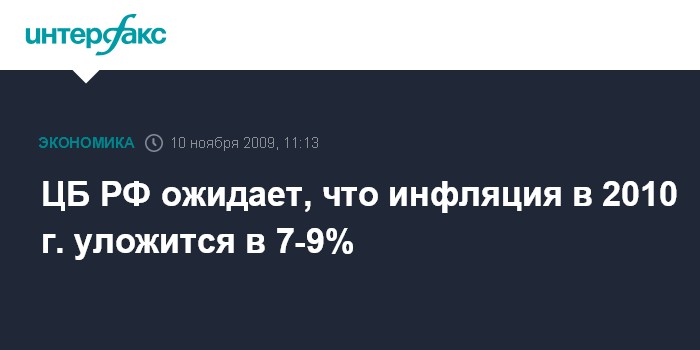 ЦБ РФ ожидает, что инфляция в 2010 г. уложится в 7-9%