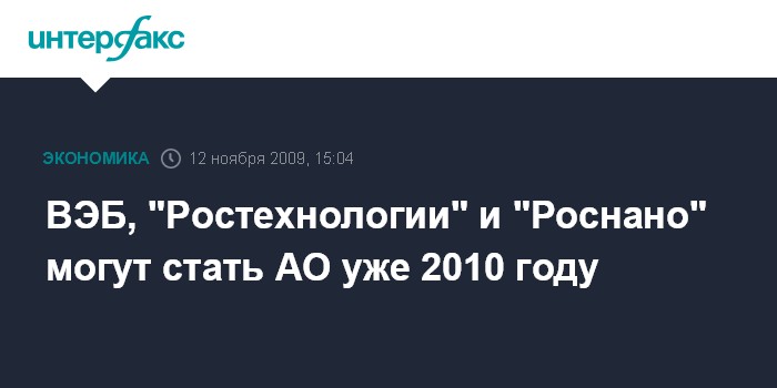 ВЭБ, "Ростехнологии" и "Роснано" могут стать АО уже 2010 году