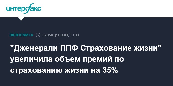 "Дженерали ППФ Cтрахование жизни" увеличила объем премий по страхованию жизни на 35%