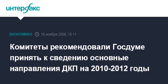 Комитеты рекомендовали Госдуме принять к сведению основные направления ДКП на 2010-2012 годы