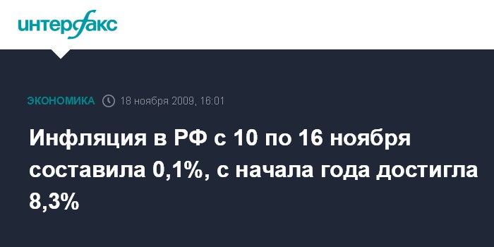 Москва. 18 ноября. INTERFAX.RU - Инфляция в РФ с 10 по 16 ноября составила 0,1%, сообщил в среду Росстат. Потребительские цены растут по 0,1% вторую неделю подряд после нулевой инфляции на протяжении 9-ти недель.