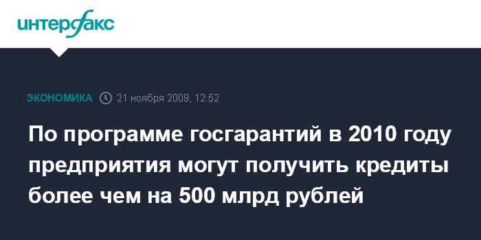 По программе госгарантий в 2010 году предприятия могут получить кредиты более чем на 500 млрд рублей