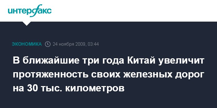 Пекин. 24 ноября. ИНТЕРФАКС-КИТАЙ - Общая протяженность железных дорог Китая вырастет в ближайшие три года с 80 тыс. километров до 111 тыс. километров, заявил на международной конференции главный специалист отдела планирования министерства железных дорог КНР Чжэн Цзянь.