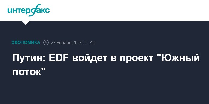 Путин: EDF войдет в проект "Южный поток"