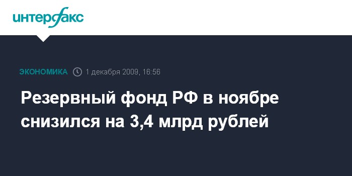 Резервный фонд РФ в ноябре снизился на 3,4 млрд рублей