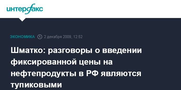 Москва. 2 декабря. INTERFAX.RU - Разговоры о введении фиксированной цены на нефтепродукты в РФ являются тупиковыми, сообщил министр энергетики РФ Сергей Шматко, выступая в среду на "правительственном часе" в Госдуме РФ.