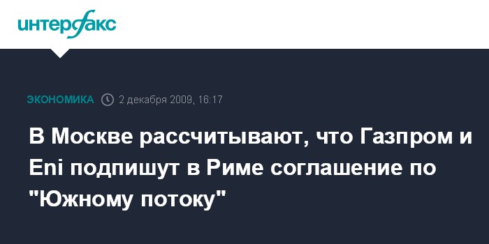 В Москве рассчитывают, что Газпром и Eni подпишут в Риме соглашение по "Южному потоку"