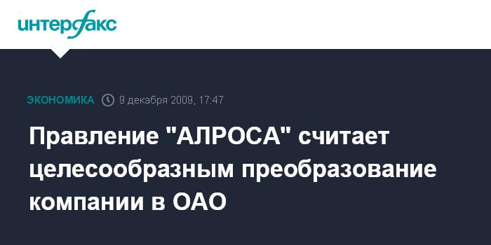 Москва. 9 декабря. INTERFAX.RU - Правление АК "АЛРОСА" считает целесообразным преобразование компании в открытое акционерное общество, в том числе для повышения инвестиционной привлекательности компании.