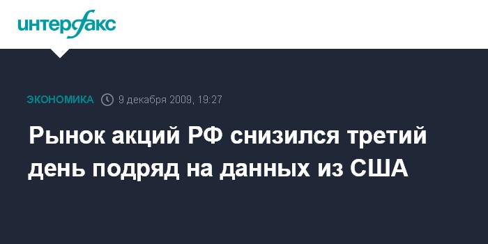 Москва. 9 декабря. INTERFAX.RU - Рынок акций РФ в среду снизился третий день подряд на фоне негативной динамики мировых фондовых площадок и нефти, что было спровоцировано слабой статистикой из США; однако индекс ИММВБ удержался выше отметки 1300 пунктов.