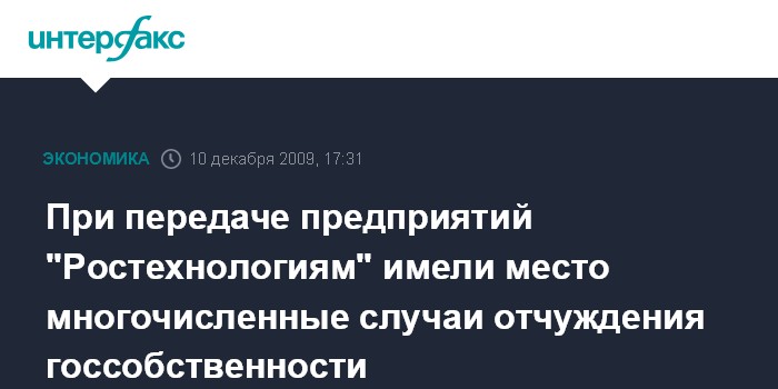 При передаче предприятий "Ростехнологиям" имели место многочисленные случаи отчуждения госсобственности