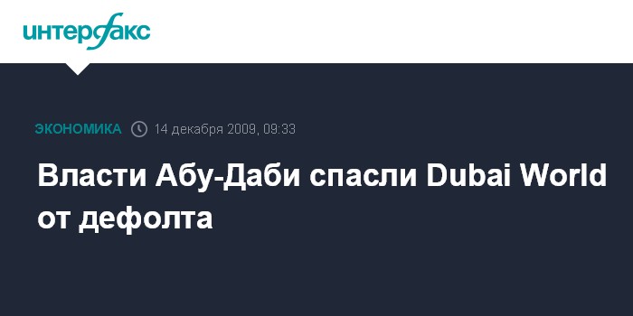 Москва. 14 декабря. INTERFAX.RU - Правительство Абу-Даби, самого большого эмирата ОАЭ, оказало поддержку дубайскому госфонду Dubai World в размере $10 млрд. Помощь соседнего эмирата позволит госкомпании выполнить свои долговые обязательства, включая выплату $4,1 млрд по исламским облигациям сукук, срок погашения которых истекает 14 декабря, сообщило агентство Bloomberg.