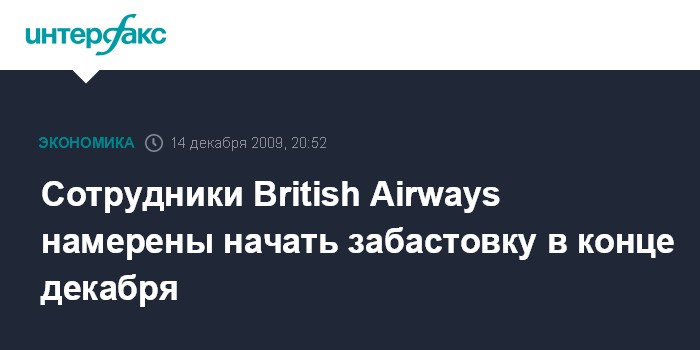 Сотрудники British Airways намерены начать забастовку в конце декабря