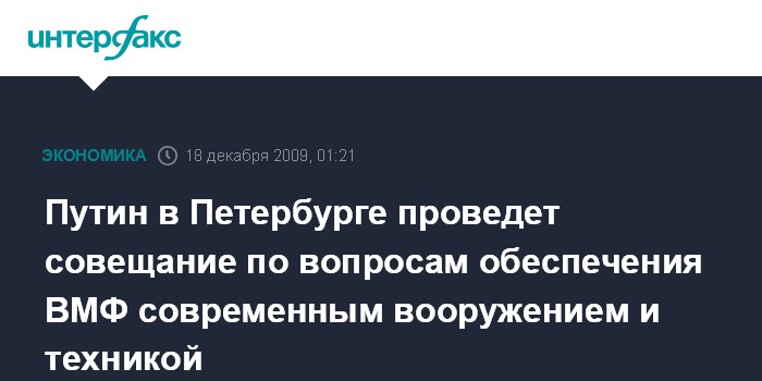 Путин в Петербурге проведет совещание по вопросам обеспечения ВМФ современным вооружением и техникой