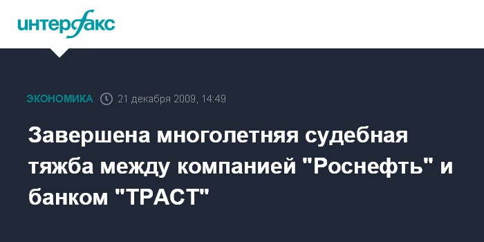 Завершена многолетняя судебная тяжба между компанией "Роснефть" и банком "ТРАСТ"