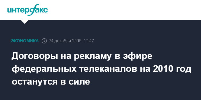 Договоры на рекламу в эфире федеральных телеканалов на 2010 год останутся в силе