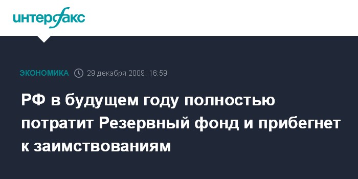РФ в будущем году полностью потратит Резервный фонд и прибегнет к заимствованиям