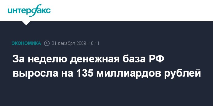 За неделю денежная база РФ выросла на 135 миллиардов рублей