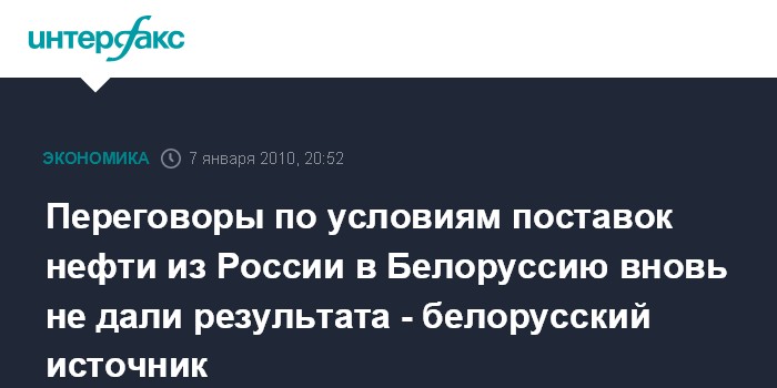 Переговоры по условиям поставок нефти из России в Белоруссию вновь не дали результата - белорусский источник