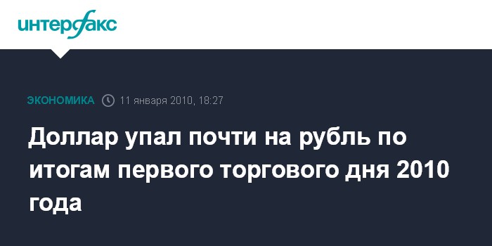 Доллар упал почти на рубль по итогам первого торгового дня 2010 года