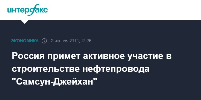 Россия примет активное участие в строительстве нефтепровода "Самсун-Джейхан"