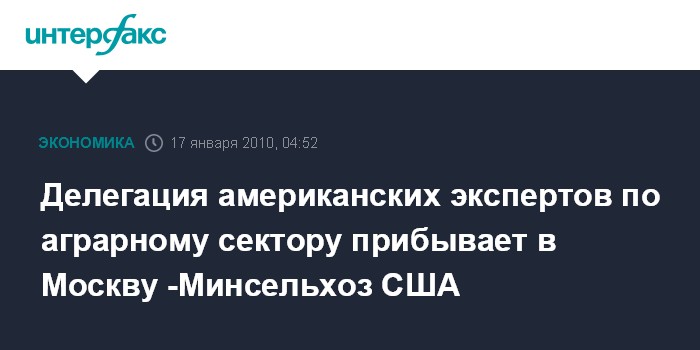 Делегация американских экспертов по аграрному сектору прибывает в Москву -Минсельхоз США