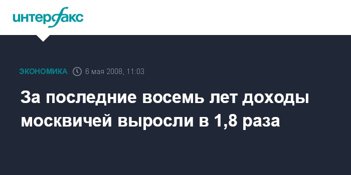 За последние восемь лет доходы москвичей выросли в 1,8 раза