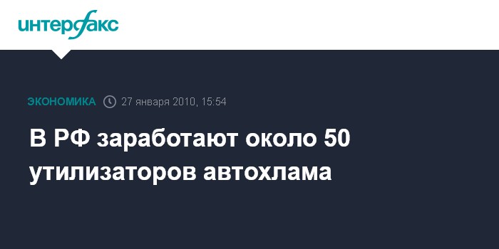 "Есть ясность по 42 структурам, которые способны эти функции выполнять. Думаем, что по итогам эта цифра не выйдет за пределы 50", - заявил Христенко, отметив при этом, что соответственно утилизаторы будут работать не во всех регионах. "Из других регионов придется завозить автомобили", - добавил он.