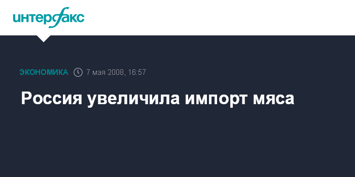 Москва. 7 мая. INTERFAX.RU - Россия в I квартале увеличила импорт мяса до 301 тыс. т. общей стоимостью $778,9 млн, что на 21,5% больше по сравнению с январем-мартом прошлого года.