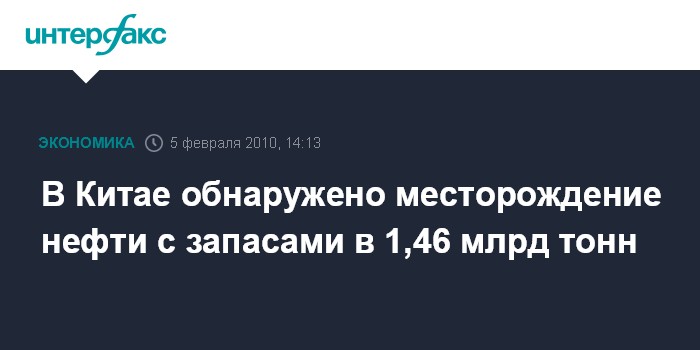 Пекин. 5 февраля. INTERFAX.RU - Месторождение нефти, геологические запасы которого предварительно оцениваются в 1,46 млрд тонн, обнаружено в северо-восточной китайской провинции Ляонин в районе города Синьминь, пишет в пятницу китайская газета "Шэньян жибао".
