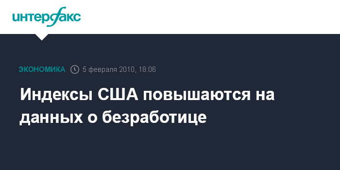 Нью-Йорк. 5 февраля. INTERFAX.RU - Фондовые индексы в США в начале торгов в пятницу демонстрируют положительную динамику благодаря хорошим данным с рынка труда, пишет MarketWatch. Безработица в США в январе неожиданно снизилась до 9,7%, что является минимумом с августа прошлого года, по сравнению с 10% месяцем ранее. Аналитики ожидали, что безработица останется на прежнем уровне.