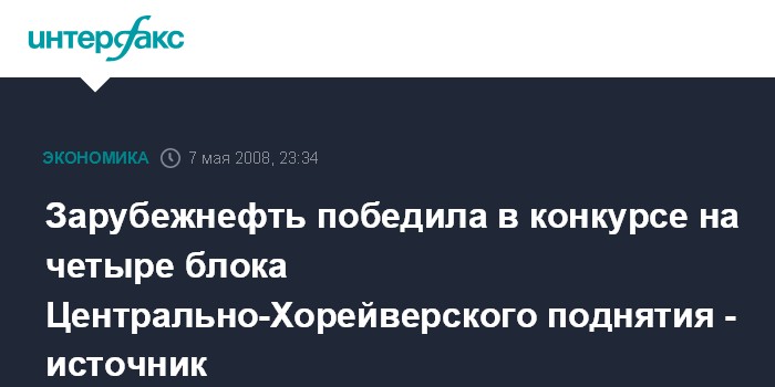 Москва. 7 мая. ИНТЕРФАКС-АНИ - Конкурсная комиссия департамента по недропользованию по Северо-Западному федеральному округу (Севзапнедра) признали ОАО "Зарубежнефть" победителем конкурса по четырем блокам Центрально-Хорейверского поднятия в Ненецком автономном округе, сообщил Агентству нефтяной информации источник, знакомый с результатами конкурса.