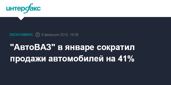Москва/Самара. 8 февраля. INTERFAX.RU - ОАО "АвтоВАЗ" в январе 2010 г. уменьшило продажи автомобилей на 41% по сравнению с январем 2009 года - до 17,3 тыс. машин, говорится в материалах комитета автопроизводителей Ассоциации европейского бизнеса (АЕБ).