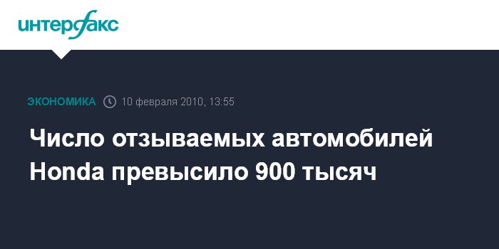 Москва. 10 февраля. IFX-NEWS - Второй по величине японский автопроизводитель - Honda Motor Co. - отозвал дополнительные модели автомобилей 2001 и 2002 гг. Общее количество отзываемых по всему миру автомашин превышает 900 тыс., сообщает издание MarketWatch.