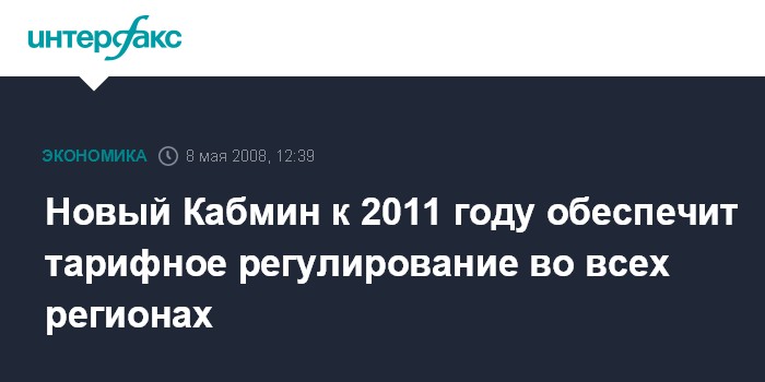 Москва. 8 мая. INTERFAX.RU - К 2011 г. долгосрочное тарифное регулирование будет введено во всех регионах страны, заявил кандидат в премьеры РФ Владимир Путин в ходе выступления в Госдуме РФ в четверг.