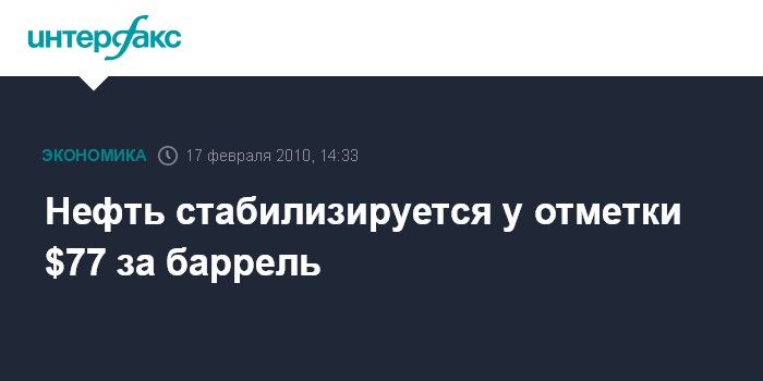 Москва. 17 февраля. INTERFAX.RU - Цена нефти днем в среду стабилизируется у $77 за баррель, темпы ее роста замедляются в ожидании данных о росте запасов углеводородов в США, сообщило агентство Bloomberg.