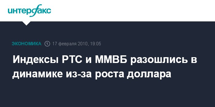 Индексы РТС и ММВБ разошлись в динамике из-за роста доллара