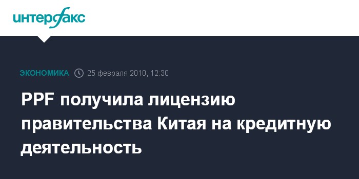 PPF получила лицензию правительства Китая на кредитную деятельность