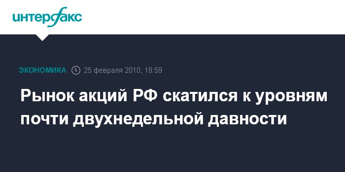 Москва. 25 февраля. INTERFAX.RU - Рынок акций РФ в четверг скатился к уровням почти двухнедельной давности на фоне снижения мировых фондовых площадок и нефти, которое спровоцировали новости о вероятном снижении кредитного рейтинга Греции и слабая статистика с рынка труда США.