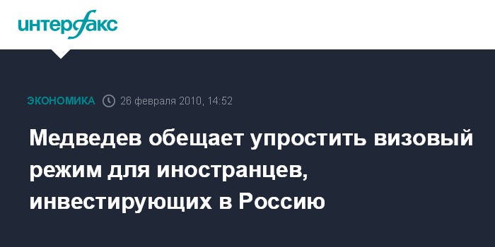 Медведев обещает упростить визовый режим для иностранцев, инвестирующих в Россию