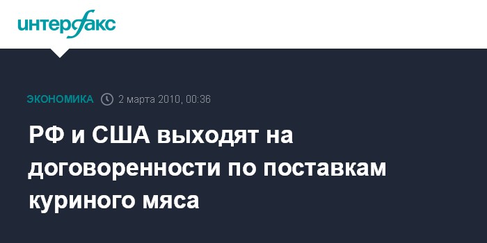 Москва. 2 марта. ИНТЕРФАКС - Российские и американские эксперты во вторник на переговорах в Москве могут выйти на конкретные договоренности по вопросу о поставках куриного мяса из США в РФ.