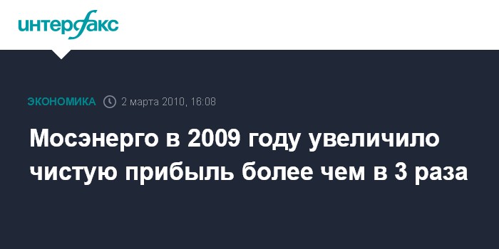 Мосэнерго в 2009 году увеличило чистую прибыль более чем в 3 раза