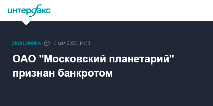 ОАО "Московский планетарий" признан банкротом
