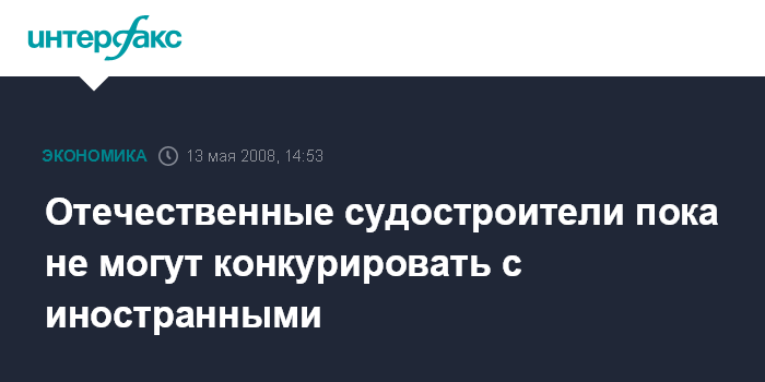 Москва. 13 мая. INTERFAX.RU - Премьер-министр РФ Владимир Путин констатирует, что российские судостроители проигрывают в конкуренции зарубежным партнерам.