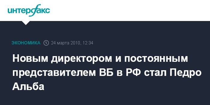 Новым директором и постоянным представителем ВБ в РФ стал Педро Альба