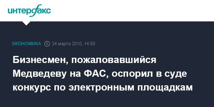 Бизнесмен, пожаловавшийся Медведеву на ФАС, оспорил в суде конкурс по электронным площадкам