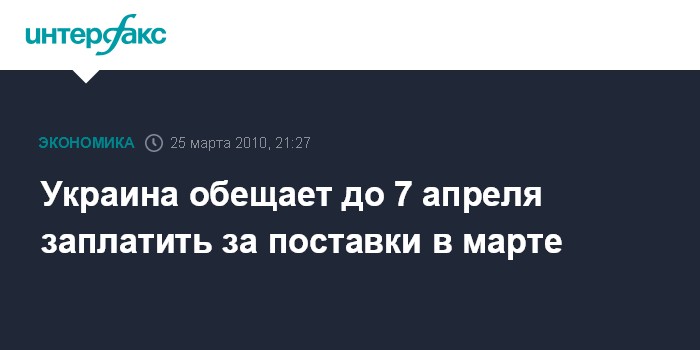 Украина обещает до 7 апреля заплатить за поставки в марте