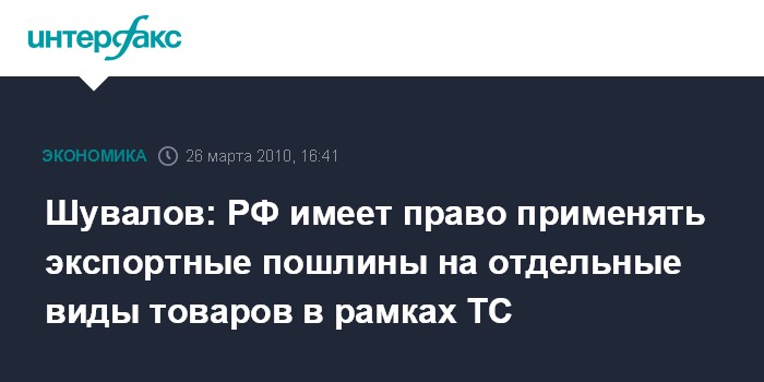 Шувалов: РФ имеет право применять экспортные пошлины на отдельные виды товаров в рамках ТС