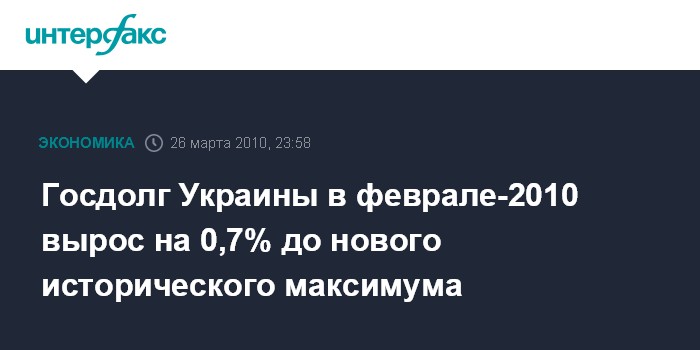 Госдолг Украины в феврале-2010 вырос на 0,7% до нового исторического максимума