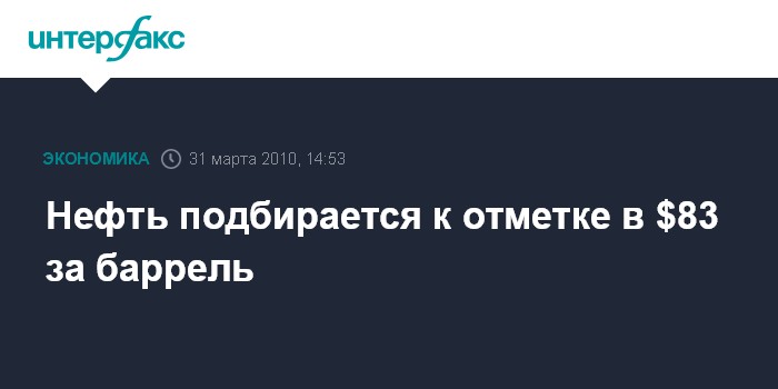 Цена майских фьючерсных контрактов на нефть марки WTI на электронных торгах Нью-йоркской товарной биржи на 14:00 мск составляла $82,94 за баррель, что на $0,76 (+0,7%) выше уровня 30 марта. Стоимость фьючерса на нефть Brent на май на лондонской бирже ICE Futures 31 марта поднялась на $0,42 (+0,58%) - до $81,7 за баррель.