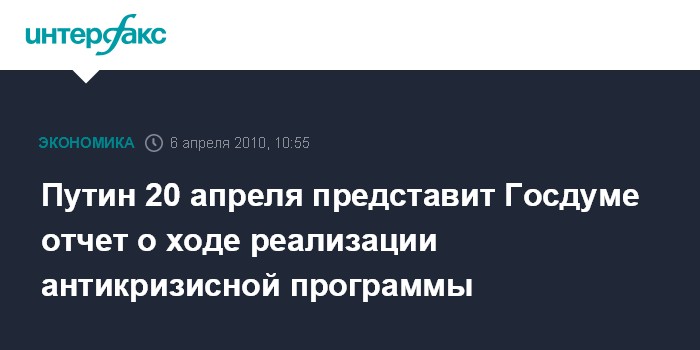 Путин 20 апреля представит Госдуме отчет о ходе реализации антикризисной программы